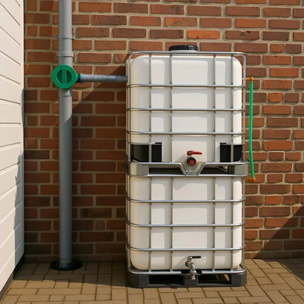 - L’alimentation en eau doit être prévue dans le conteneur IBC supérieur pour un fonctionnement idéal et la collecte des eaux de pluie