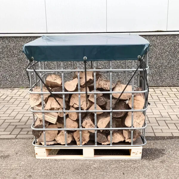 Cuve IBC – sans poche intérieure sur palette en bois – stocker le bois de chauffage – stockage bois de chauffage